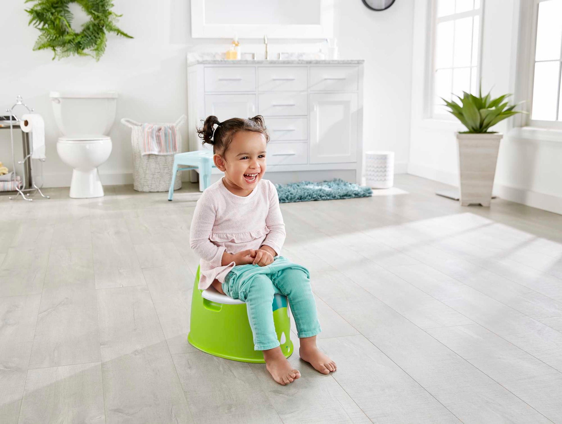 Everybody's gotta learn, and the Fisher-Price® Dino Potty helps the training process along with a cool potty pal. Its friendly face and easy-grasp handles help toddlers feel more comfortable and secure as they do their business, while the built-in splash guard and removable bowl helps keep cleanup quick and easy. When your toddler is roarin' to go, the Dino Potty's got 'em covered! Where development comes into play™ Gross Motor: As little ones independently lower themselves onto the potty (and get back up again!), they'll develop balance & coordination. Self-Identity: Every successful visit to their potty pal helps build up your toddler's self-confidence! Security & Happiness: The low seat and easy-grasp handles help toddlers feel secure and grounded as they sit on the potty and are introduced to the potty routine.