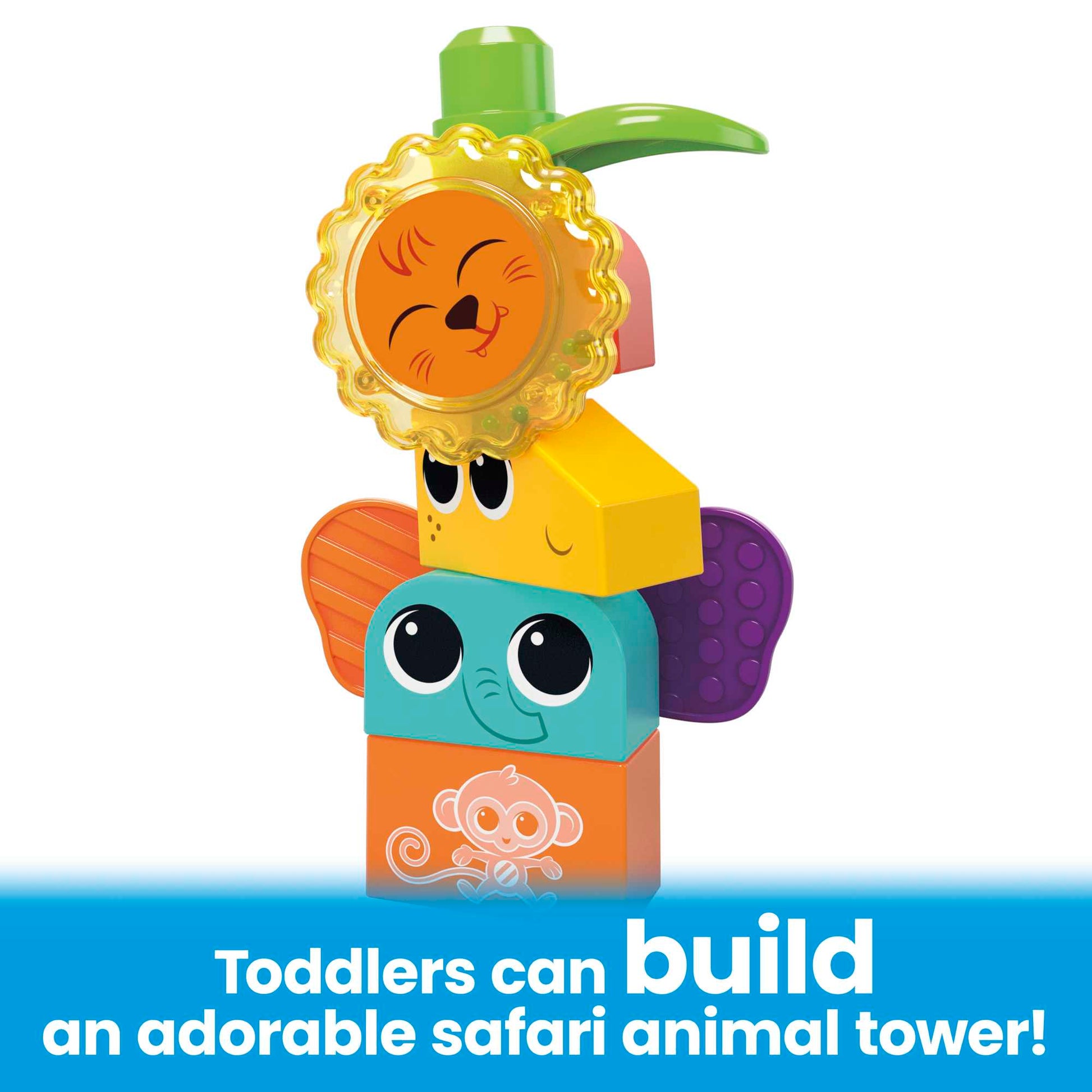 MEGA Bloks Rock N Rattle Safari Sensory Building Toys For Toddlers 1-3 (15 Pcs)